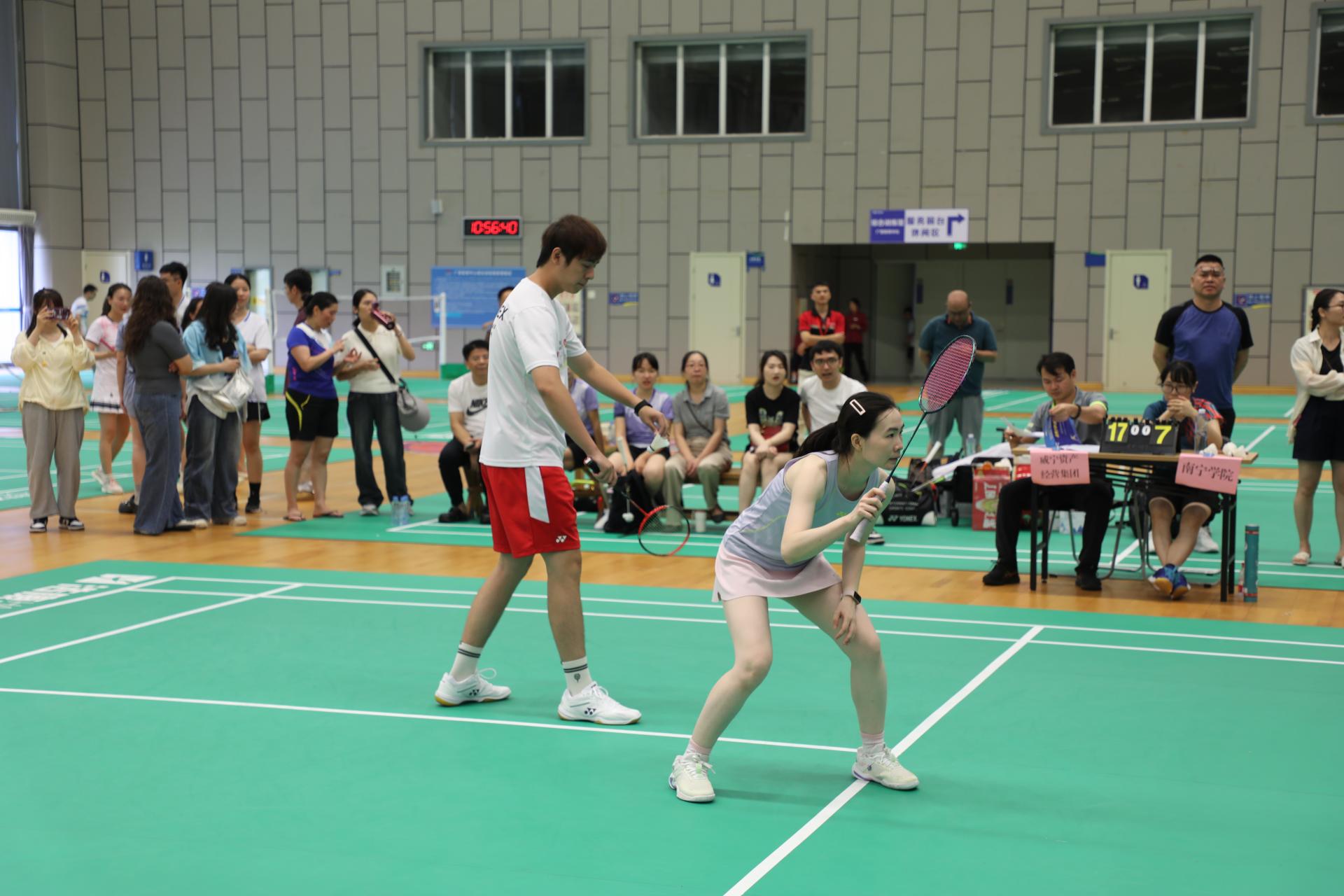 隨著一聲清脆的哨響,混合雙打比賽率先點燃賽場戰(zhàn)火。男女選手們默契配合,每一次攻防都扣人心弦。他們或網(wǎng)前全力撲救,巧妙化解對手的刁鉆來球;或后場重攻猛擊,扣球干脆利落。雙方你來我往,精湛的球技引得場下觀眾連連喝彩、掌聲雷動。