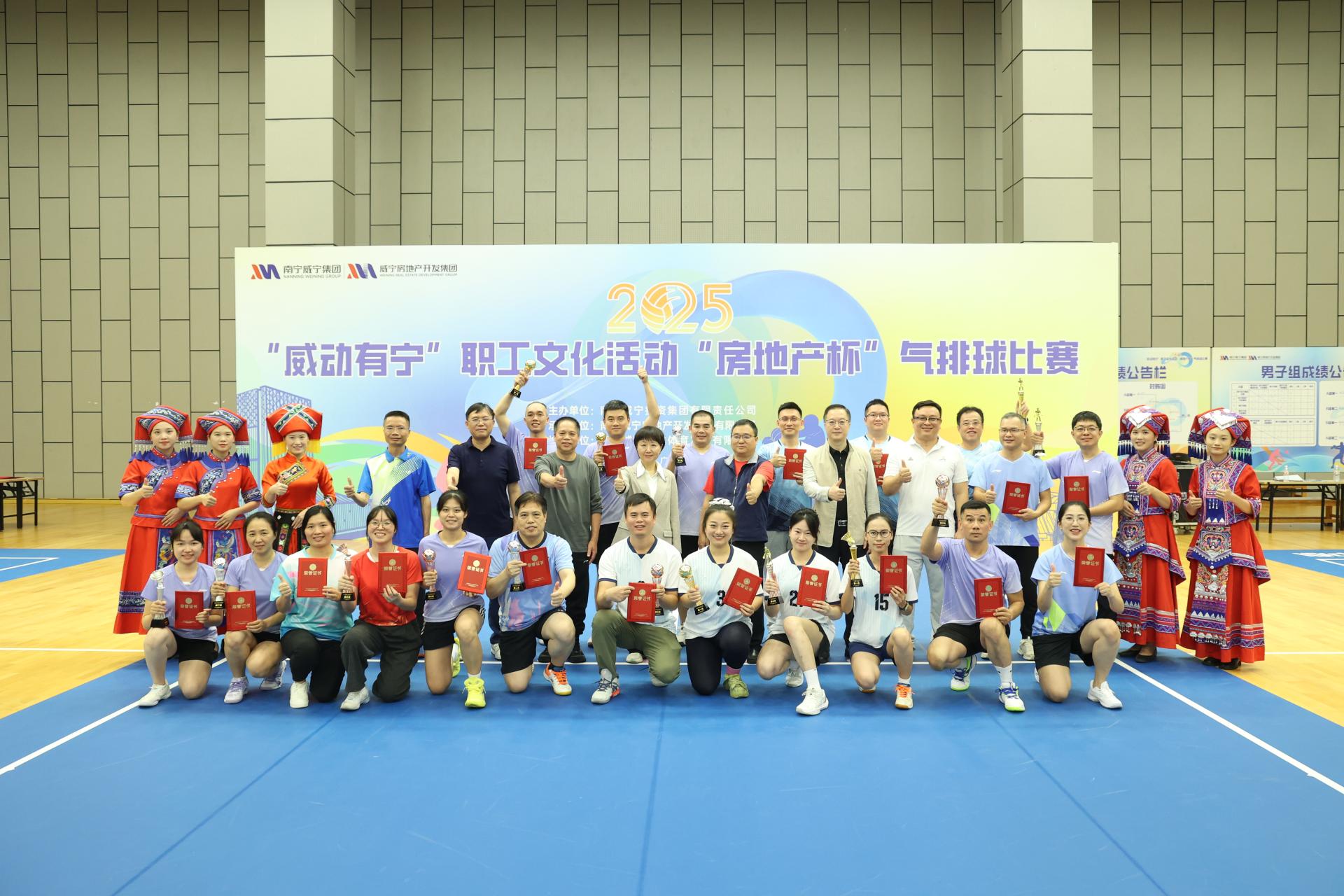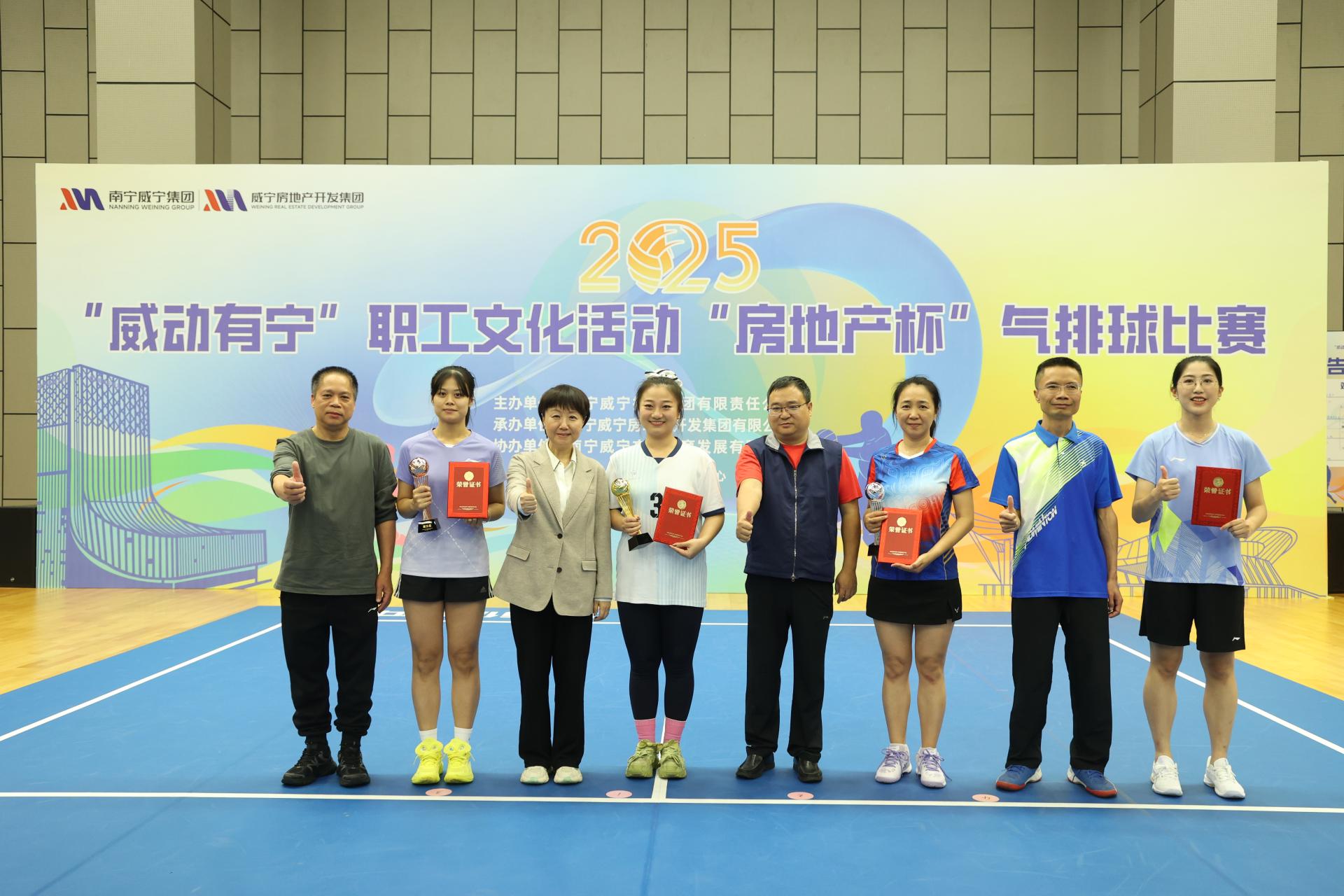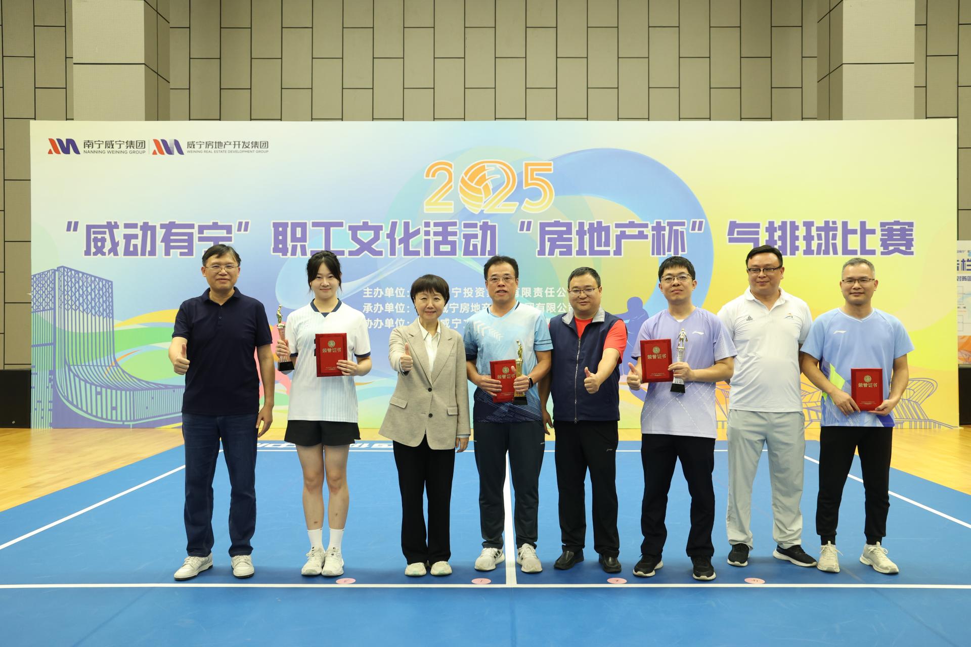 2025年11月16日,隨著最后一場氣排球賽事的終場哨響,南寧威寧集團(tuán)2025年“威動有寧”職工文化活動在團(tuán)結(jié)、熱烈、拼搏的氛圍中迎來圓滿收官。當(dāng)天舉行的“房地產(chǎn)杯”氣排球比賽頒獎儀式為這場貫穿全年的文化盛宴畫上了精彩的句號。集團(tuán)黨委書記、董事長劉巧瑛出席儀式并致閉幕詞,集團(tuán)黨委副書記、總經(jīng)理蘇慶威宣布獲獎名單,集團(tuán)領(lǐng)導(dǎo)班子成員為在系列賽事中獲獎的隊(duì)伍頒獎。