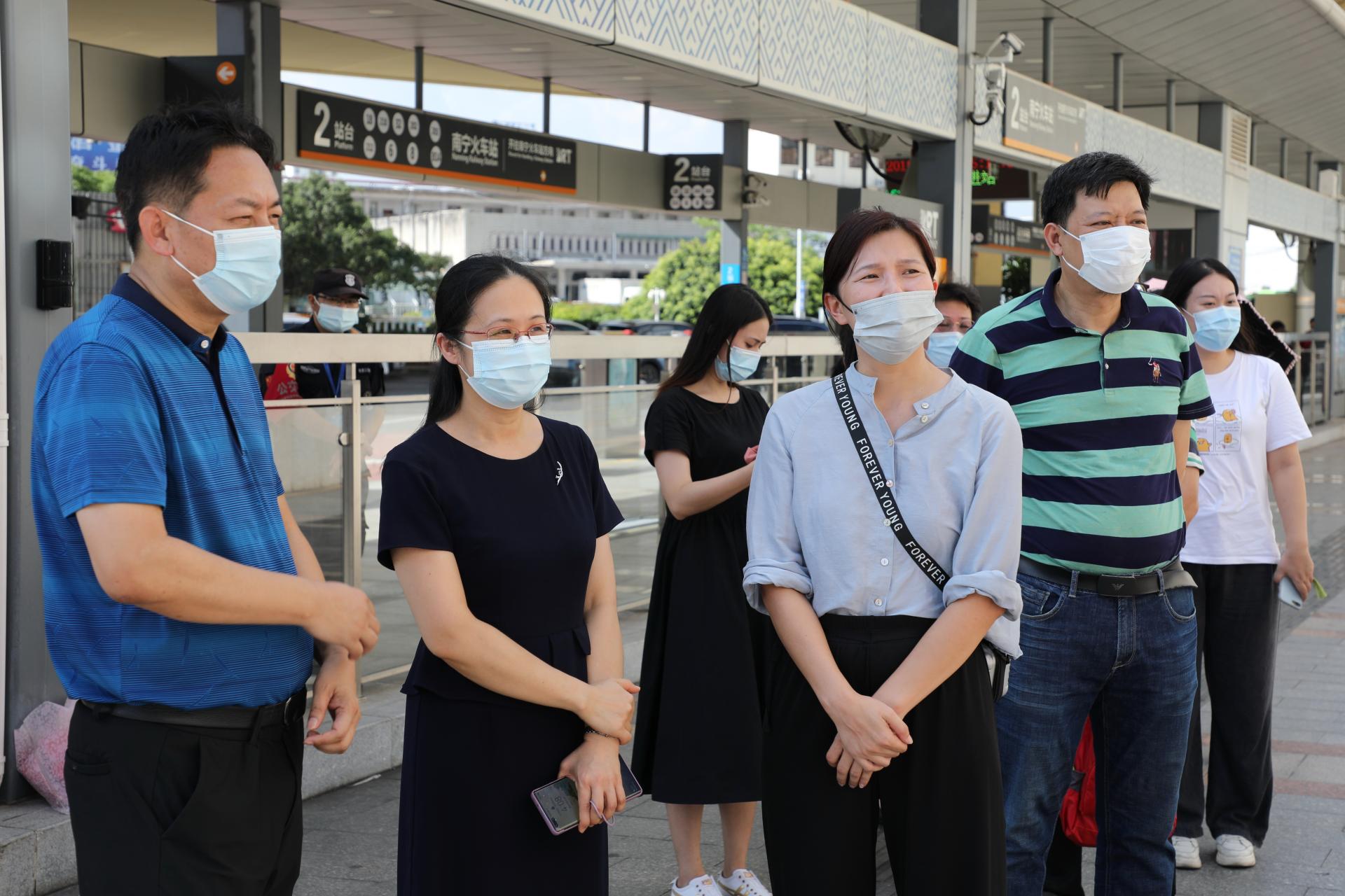 8月15日下午,南寧市總工會副主席馮曉華帶領(lǐng)慰問組到威沃醫(yī)養(yǎng)公司便民核酸采樣點開展“炎炎夏日送清涼”慰問活動,為在高溫天氣下堅守崗位的便民核酸采樣點工作人員送去一份夏日的清涼。集團黨委副書記、工會主席馬超毅參加慰問活動。