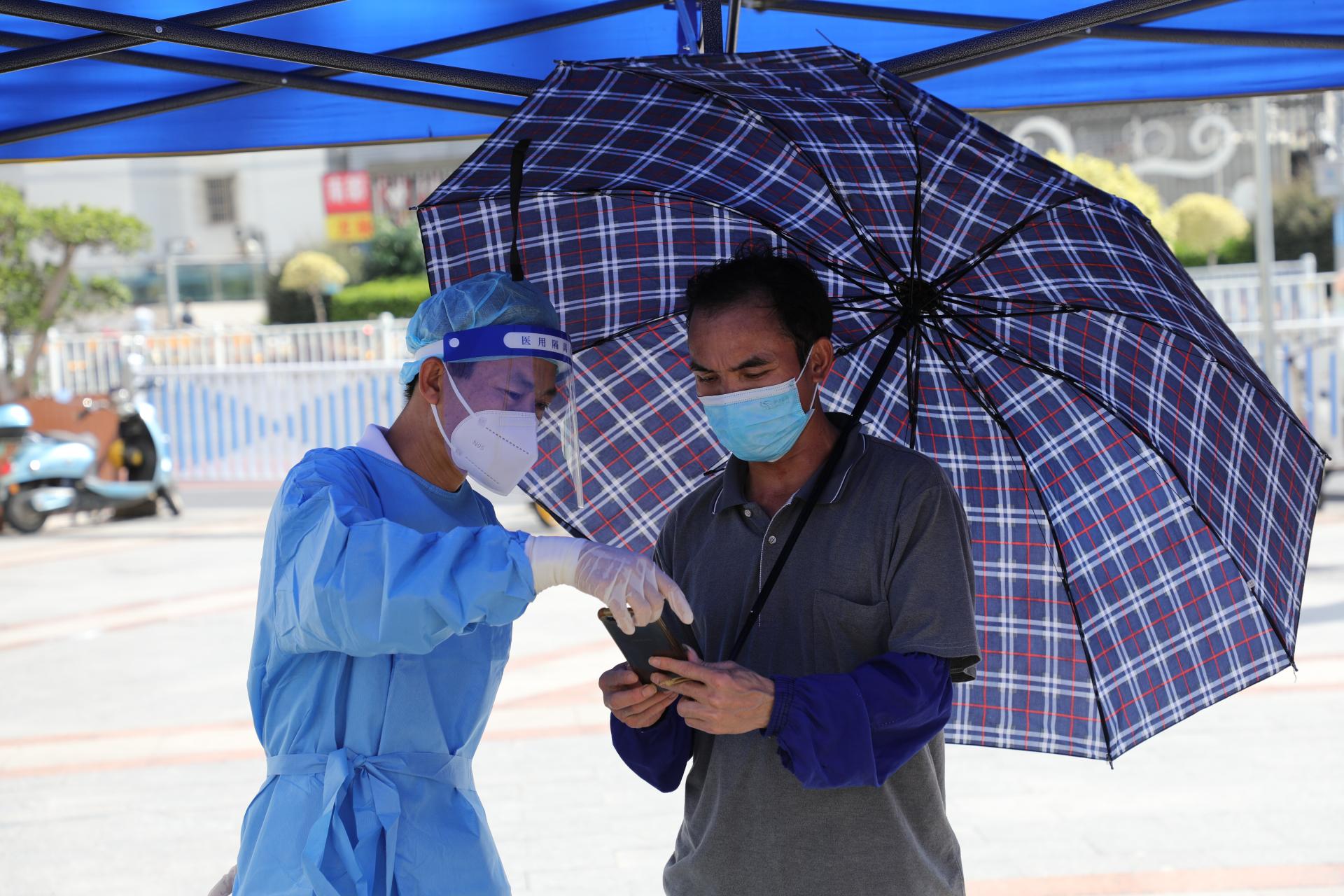 采樣點工作人員查驗“三碼”