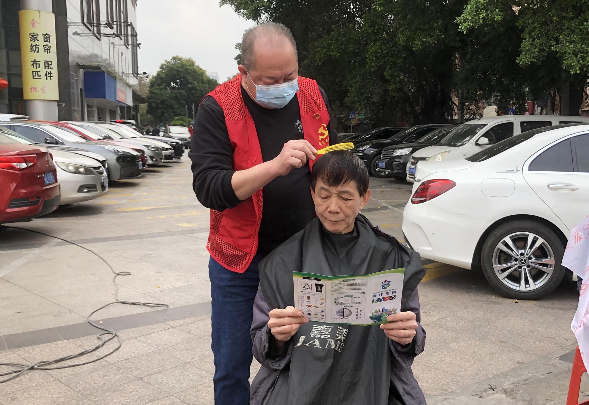 公司黨員志愿者為群眾理發(fā)