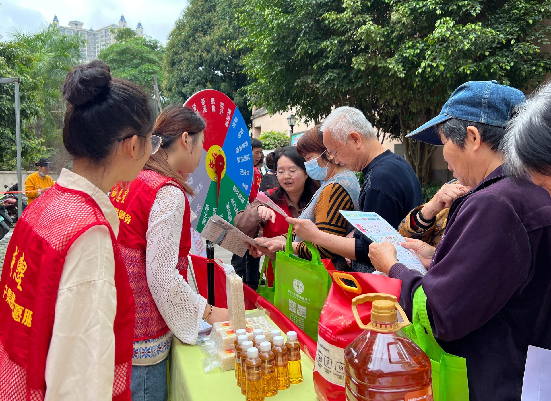 在金凱社區(qū)玫瑰園小區(qū),公司監(jiān)管單位南寧市儲備糧公司開展的“點‘糧’‘威光’”志愿服務活動吸引著小區(qū)居民踴躍參與。活動中,儲備糧公司黨員志愿者們號召小區(qū)居民親身體驗大米食味測試,組織居民參與生活垃圾分類互動游戲,引導居民在辨別優(yōu)質(zhì)大米、了解生活垃圾分類知識的過程中進一步養(yǎng)成愛糧節(jié)糧和保護環(huán)境的良好習慣,為建設“綠色、低碳、環(huán)?!钡拿利惣覉@貢獻力量。