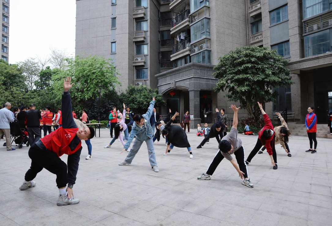 健身教練示范傳授社區(qū)居民健身動(dòng)作