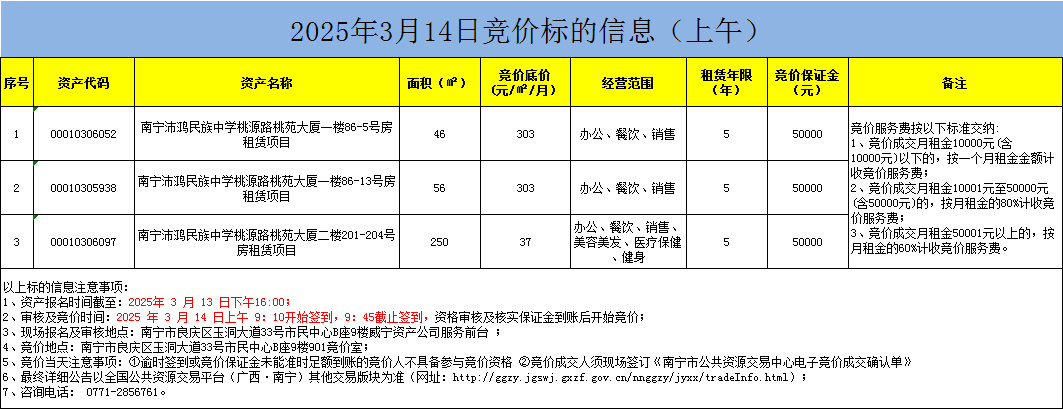 2025年3月14日競(jìng)價(jià)標(biāo)的信息(現(xiàn)場(chǎng)競(jìng)價(jià))