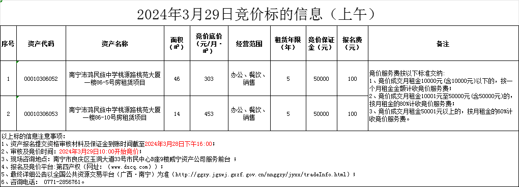 2024年3月29日競(jìng)價(jià)標(biāo)的信息(線上競(jìng)價(jià))