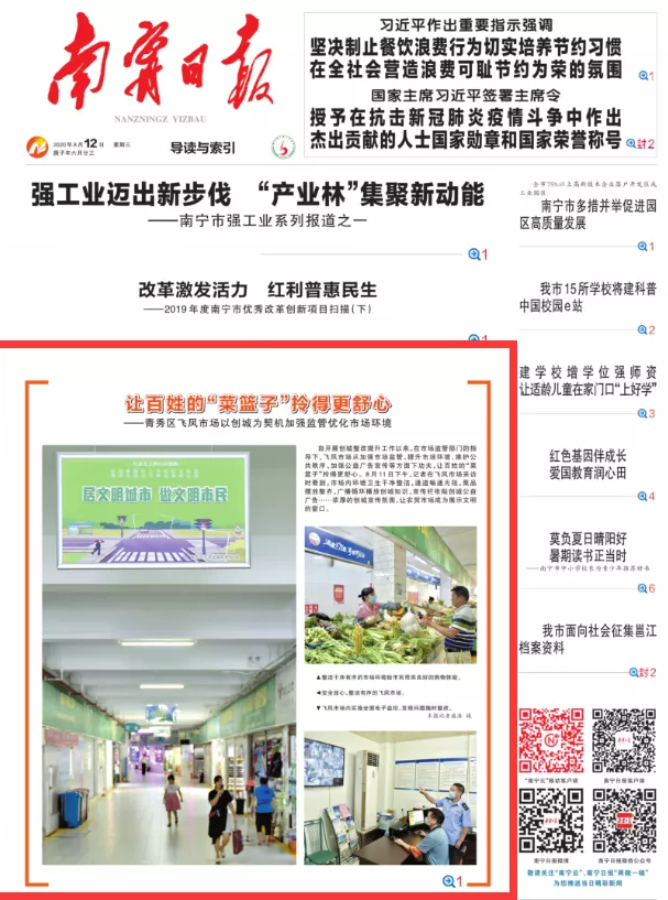 近日,《南寧日報(bào)》《南寧晚報(bào)》、南寧廣播電視臺等市屬多家媒體,也走進(jìn)飛鳳市場,宣傳報(bào)道市場在創(chuàng)城整改提升工作中的成效。